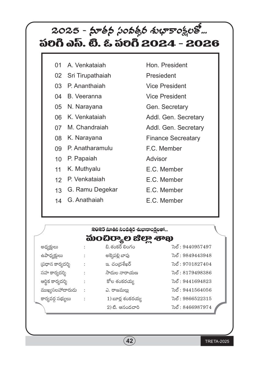 Members should use the printed diary or contact their nearest TRETA unit for the latest phone numbers, meeting schedules and grievance-redressal support.